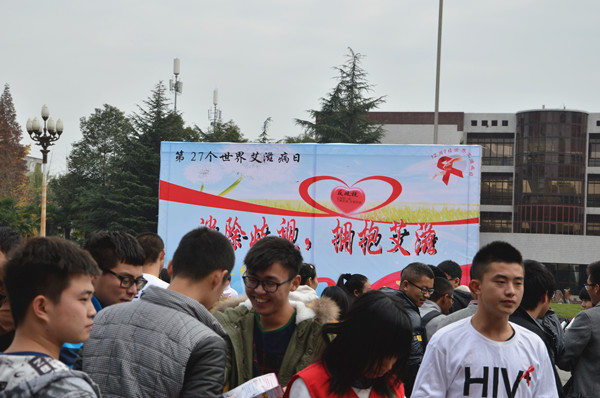 为了让大学生了解艾滋病相关知识,关爱HIV阳性患者,12月1日,由能源与环境学院主办的“消除歧视,拥抱艾滋”大型主题活动在明德广场开展,能源与环境学院志愿者分会和绿色脚印公益组织成员主要负责此次活动,此外,成都爱白同志中心和郫县疾控中心点对活动也给予了大力支持。