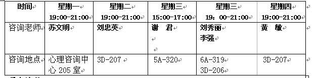 3.咨询当天请预约同学提前五分钟到预约地点等候,如临时有事,请提前4小时通过预约咨询电话修改或取消预约。