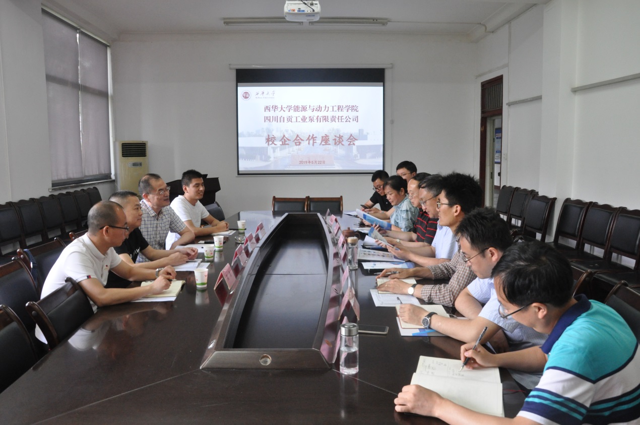 5月22日下午,四川省自贡工业泵有限责任公司副总经理黄运成、董事长办公室主任林代强、总经理助理徐明建、水泵研究所工程师尚勇一行来院考察交流。黄运成副总经理一行首先参观了流体及动力机械教育部重点实验室,随后,双方在1A321举行了校企合作座谈会,能源与动力工程学院党政领导、能源与动力工程系、流体及动力机械教育部重点实验室相关教师参加了座谈。