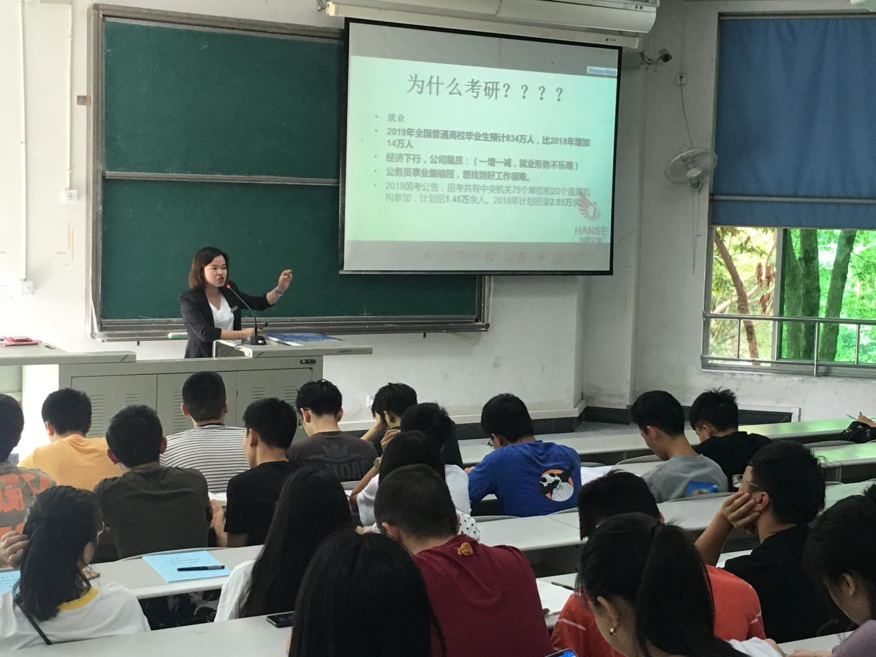 动员大会上,新华文登教育讲师向同学们详细的阐述了考研的重要性,表示了考研是对一个人毅力的锻炼。随后,她又为同学们具体分析了当前的考研形势,指出当今社会越来越重视学历层次的高低,因此考研也就成了现代教育发展的必然趋势。老师表示,同学们可以通过考研来提升自己的学习能力、工作能力以及社会竞争力,这样才能更好的适应社会。最后,老师还简单的介绍了一些学生毕业后的主要就业方向,如到企业、报考公务员和事业单位等,并希望同学们能提早做打算,定目标,充分利用这在校的最后一年时间竭尽全力提升自己的能力。