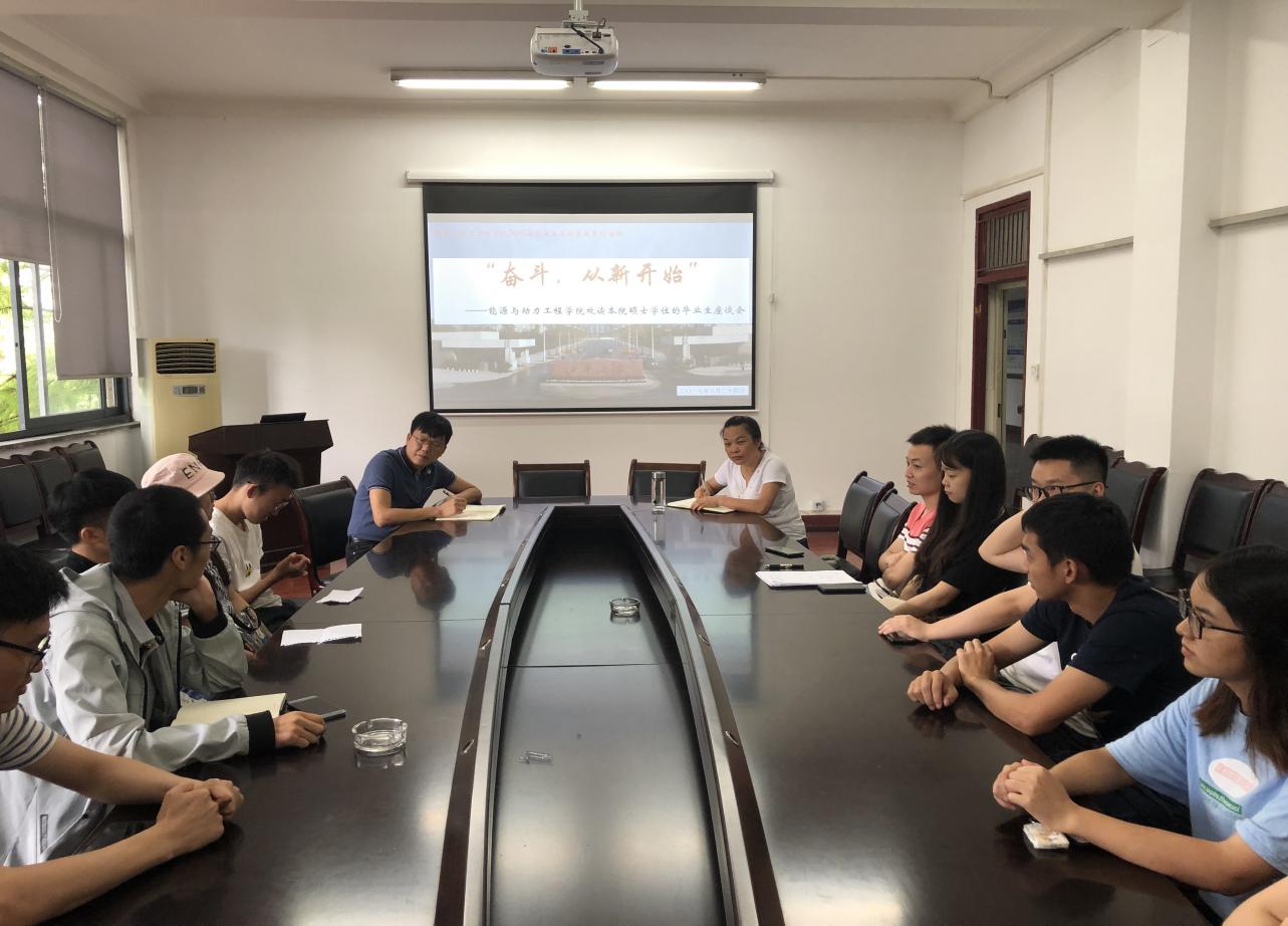 6月24日下午3:00,能源与动力工程学院在1A321会议室召开“奋斗,从新开始”主题座谈会。党委副书记兼副院长罗世韡、副院长付成华以及我院2019届本科毕业生考入本院继续攻读硕士研究生的学生参加会议。