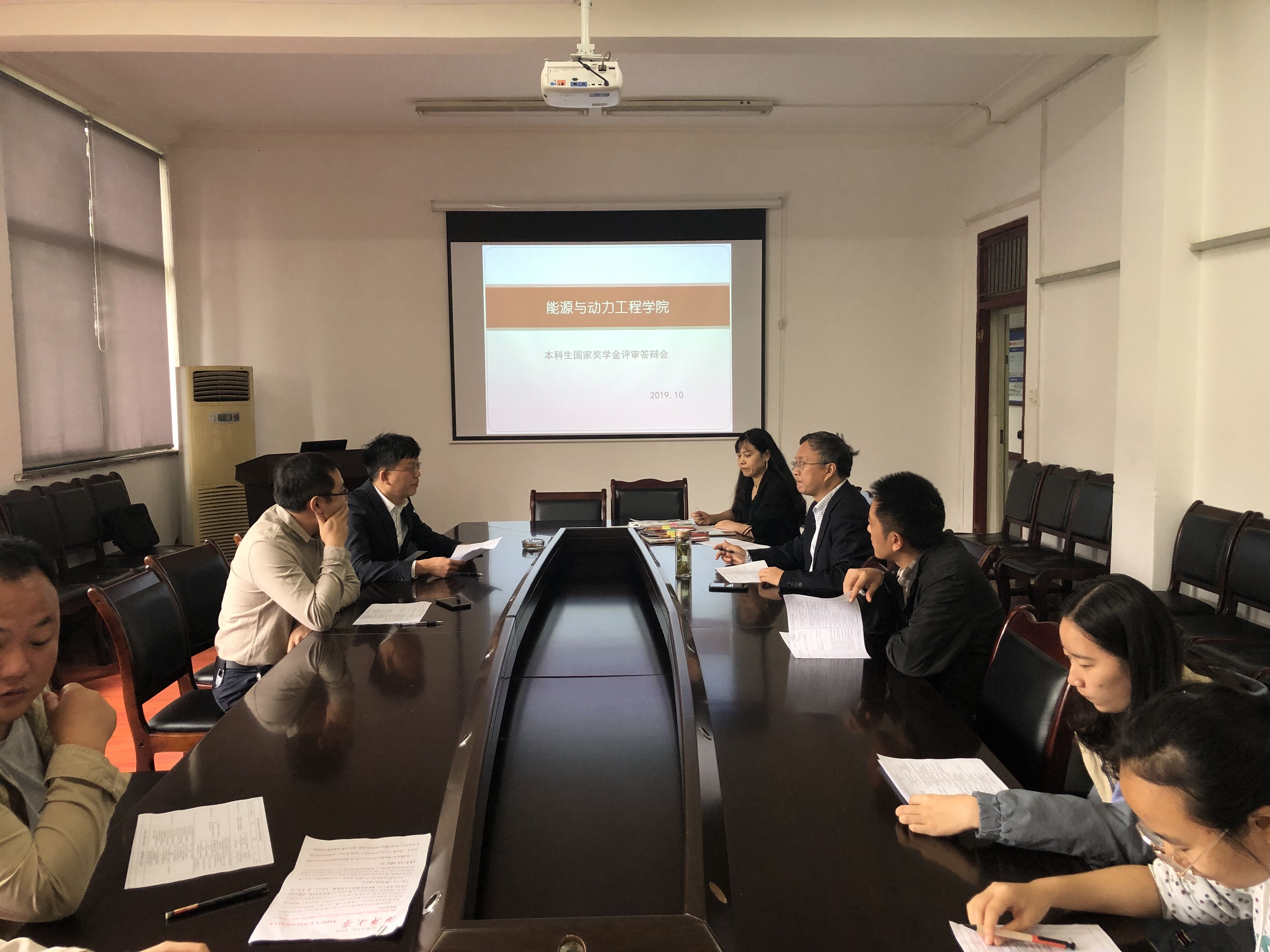 为进一步规范本科国家奖学金的评定程序,切实做到“公平、公开、公正”,保障学生权益,10月12日上午11:30,能源与动力工程学院在1A321会议室召开了2019年本科国家奖学金评审会,学院组织了以党委副书记兼副院长罗世韡为组长,学院主持日常行政工作的副院长宋文武、副院长付成华、各系室教师代表、全体辅导员和低年级学生代表为成员共计11人的评审小组。评议小组推荐的7名申请国家奖学金的同学通过PPT陈述、接受现场评委的质询等方式进行了答辩,通过评委现场投票、现场统票选出了2名得票最高的同学进入初审名单。