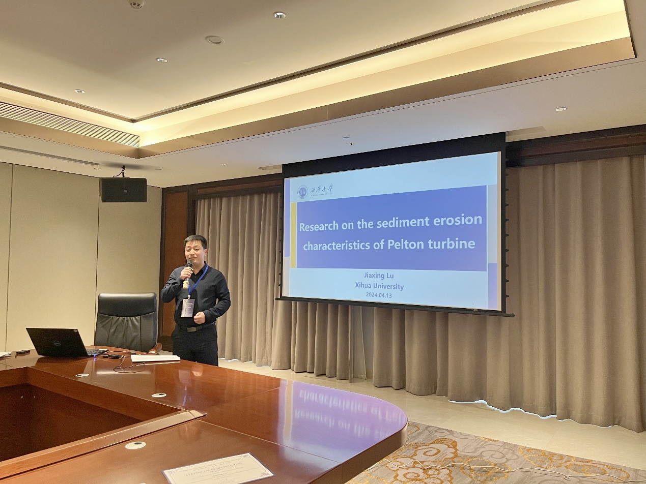 会议召开期间,流体及动力机械教育部重点实验室副主任、清华大学祝宝山教授致开幕词。流体及动力机械教育部重点实验室常务副主任卢加兴副教授受邀在“水泵和水轮机”分会场作了《Research on the sediment erosion characteristics of Pelton turbine》的特邀报告,对相关科研成果进行了分享和交流。研究生范泽宇在“流体系统”分会场作了《Numerical simulation of miniature high-speed aviation fuel pump using immersed solid method》的学术报告,分享了关于航空燃油泵的科研进展。