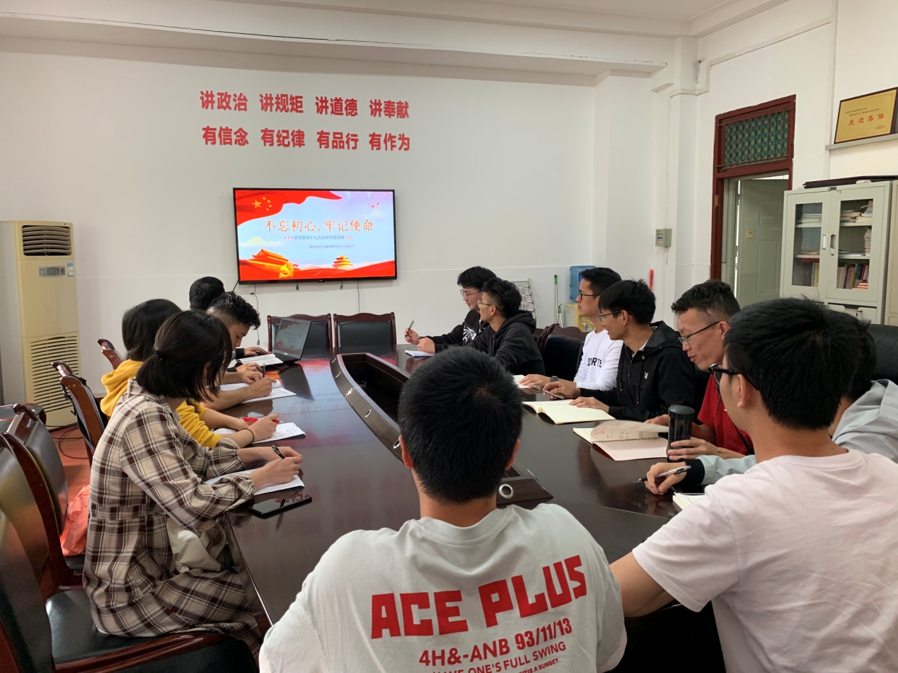 2019年10月11日下午,能源与动力工程学院研究生二支部全体党员于1A-317教室开展了“不忘初心,牢记使命”主题教育活动,深入学习习近平新时代中国特色社会主义思想,贯彻十九大精神专题党课。本次活动由支部书记曾浪令同志主持,9名正式党员以及4名预备党员同志共同参与。