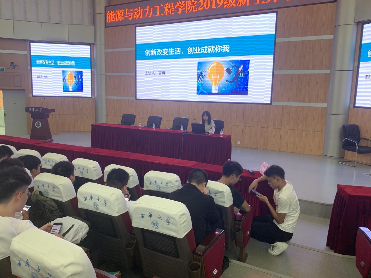 为进一步宣传创新创业相关知识、尤其是做好新生教育的第一步。2019年9月10日上午,能源与动力工程学院在四教报告厅开展了“创新改变生活、创业成就你我”专题讲座。本次讲座邀请到科技园官典老师为2019级全体新生做讲解。