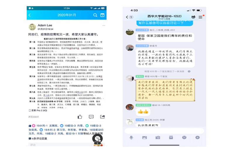 疫情发生以来,每一名能动学子都是学院的牵挂。辅导员、班主任通过网络平台,对每一位学子进行慰问,传递温暖与关怀。