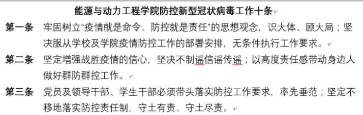 1月30日,能源与动力工程学院党委组织班子全体成员举行集中学习会,深入学习贯彻习近平总书记关于打赢疫情防控阻击战的重要指示精神,落实上级及学校党委关于疫情防控的相关工作部署与要求;讨论学院疫情防控举措,制定了《能源与动力工程学院防控新型冠状病毒工作十条》,明确要求党员尤其是党员领导干部要身先士卒,守土有责、守土尽责,并立即通过微信、QQ、易班等平台在师生中进行传达落实。