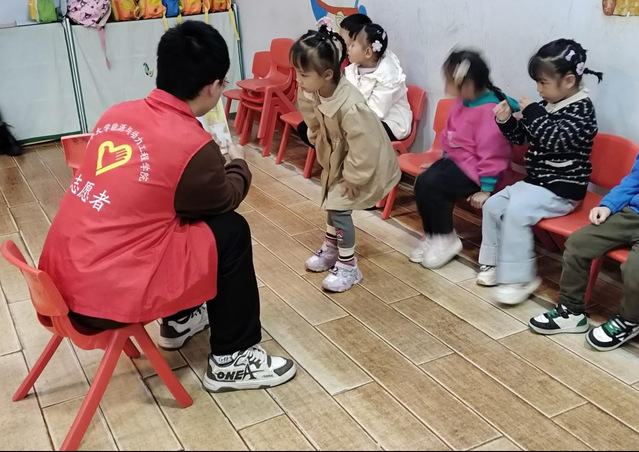 志愿者们充分发挥自身特长,通过唱小朋友们耳熟能详的儿歌、设计活泼有趣的游戏等方式,不仅锻炼了小朋友们的听力和讲话能力,也让他们感受到了来自志愿者的温暖与关怀。在活动过程中,志愿者们与小朋友们建立了深厚的友谊,共同度过了一段美好而难忘的时光。