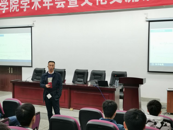 刘德民结合东方电气的工作经验以及从业以来的研究成果给同学们进行了讲解,通过介绍抽水蓄能机组水力研发关键技术研究及其工程应用,使广大能动学院的同学们对其中的关键技术有更加深入的了解,鼓励同学们在校期间要进行创新研究。