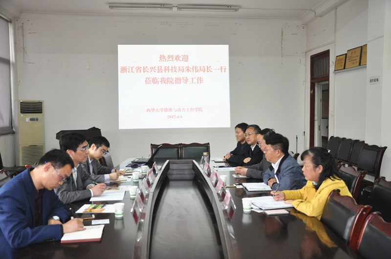 4月6日,浙江省长兴县科技局局长朱伟、副局长陈卫华、成果转化科科长方荣武以及百利得(天津)汽车安全系统有限公司总经理谢锦得一行到能源与动力工程学院洽谈科技成果转化工作。学院党委书记兼副院长赖喜德、院长刘小兵、副院长付成华、流体及动力机械教育部重点实验室教师李正贵在1A3021与客人一行举行了交流。交流会由学院副院长(主持学院行政日常工作)宋文武主持。