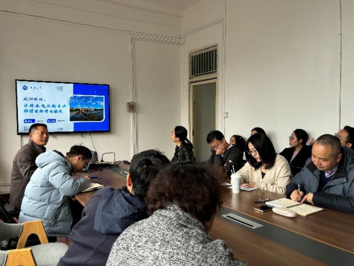 系主任王飞老师结合2025年人才培养方案的修订工作与系室老师展开讨论,王老师指出:“水利水电工程专业人才培养方案拟围绕“大水利+”进行修订,分专业方向进行建设,打造出具有自身特色的一流专业,培养出知识面宽、基础扎实、能力强、素质高等的技术人才”。张婧老师和梁俐老师结合国内外其他涉水专业建设提出了建议:“加强引进来、走出去,把BIM、数字孪生、生态水利等前沿知识融入到教学科研各环节”。