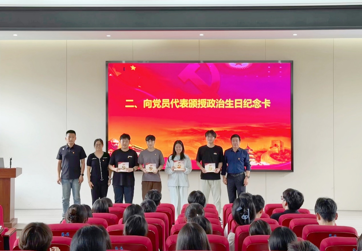与会领导和老师首先为4名毕业生党员代表送上了政治生日贺卡,希望他们无论时间过了多久,无论前路如何变幻,都不要忘了自己入党那天举起的右臂、许下的誓言。
