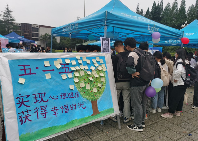 在5月25日当天,各学院齐聚明德广场,在自己学院所属的区域宣传心理健康知识,还设计了许多小游戏增加互动,例如你画我猜、成语接龙等。我院在宣传心理健康知识的同时还提供了贴纸,鼓励同学们写出自己的烦恼,勇敢地倾诉出来。还设有象棋,问题速答等游戏,胜者还会获得小礼品。当天的活动氛围积极活泼,大家都沉浸其中,放松了身心,学到了知识,达到了本次活动的预期目标。