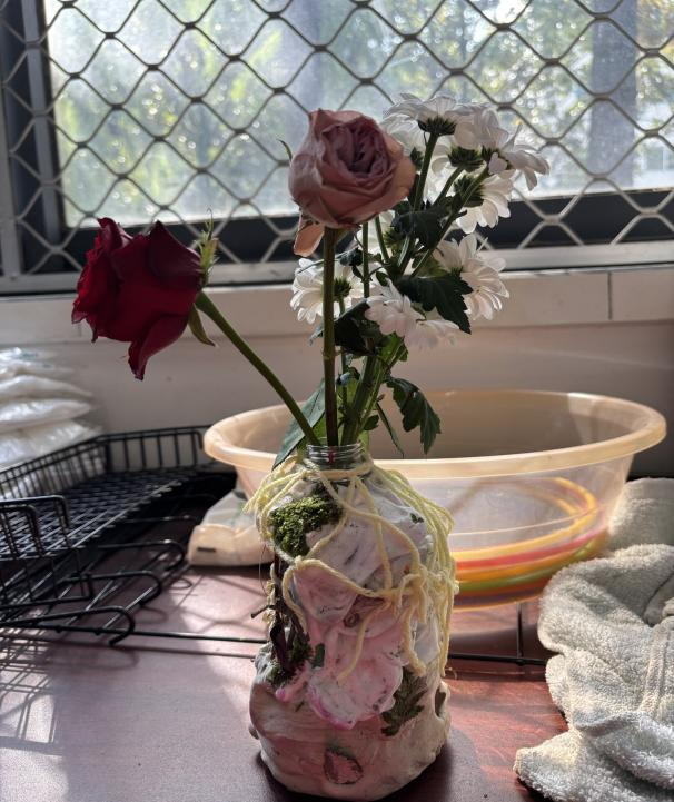 本次活动共设三个板块,同学们可自主选择参与。“DIY——认识自己”环节鼓励同学们通过文字、图片与剪贴等方式制作主题图纸,呈现对自我的认知与思考;“时光邮件——写给未来的信”邀请同学们执笔寄语一年后的自己,表达成长愿望与未来期待;“花瓶DIY——自然装饰艺术”则引导同学们利用自然材料进行手工创作,体验自然之美与艺术融合的乐趣。