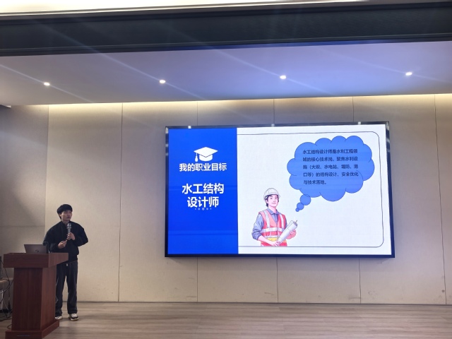 经过前期广泛动员和初步筛选,共有六名同学入围本次比赛。入围选手依次登台,围绕职业目标、学习实践行动和优化改进等方面,进行7分钟主题陈述,并回答评委提问。经过激烈角逐,最终评选出本次比赛的结果:2024级水利水电工程专业的熊茂淋同学获得一等奖,2024级能源与动力工程专业汤留浩和2025级能源与动力工程专业任润冬2名同学获得二等奖,2023级能源与动力工程专业蒲俊豪、2025级水利水电工程专业陈果和2025级水利水电工程专业郭吕好嘉3位同学获得三等奖。