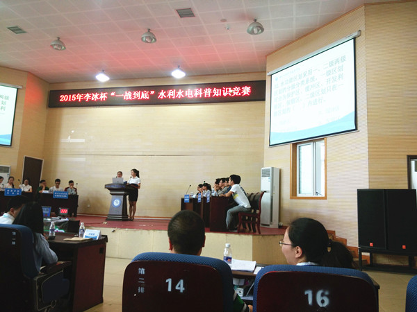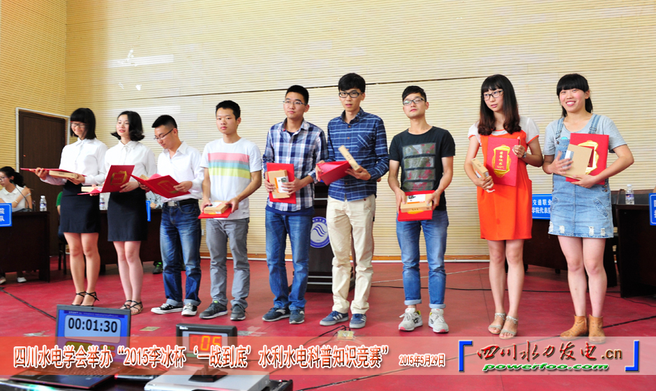 5月29日,由四川省水力发电工程学会主办的2015年李冰杯“一站到底”水利水电科普知识竞赛在四川水利职业技术学院举行。来自四川大学水利水电学院、Betway体育西汉姆联能源与动力工程学院、西昌学院水利水电专业、四川电力职业技术学院、四川交通职业技术学院水利水电专业、四川水利职业技术学院等6所院校的6组18名选手进行了激烈角逐。最终,由能源与动力工程学院水利水电工程专业谢宏建、张绍培、周意强三名同学组成的Betway体育西汉姆联代表队名列第四,获得优秀奖。
