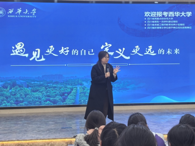 随后,方晴向在座师生开展了题为《遇见更好的自己定义更好的未来》主题宣讲,她鼓励南充高级中学的优秀学子树立远大理想,将自己的成长目标植根于祖国发展的沃土,同时介绍了Betway体育西汉姆联的办学历史、师资力量、学科特色以及招生政策,欢迎南高学子在这里开始人生新的篇章。