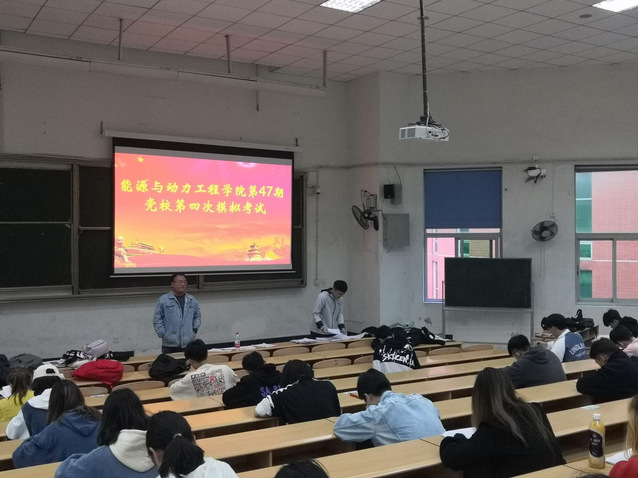 为了让学员们更好地理解党章内容,了解党的基础知识,更好地为党课结业考试做准备,强化党校入党积极分子培训学员们对党的政治理论知识的掌握,2021年10月29日,能源与动力工程学院在4A404组织了第47期党校入党积极分子培训班第四次模拟考试,旨在综合考察学员们对于党课知识的掌握程度以及自我分析理解能力的把控与运用。