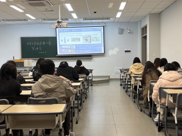 活动伊始,作为国赛评委、深耕节能减排领域多年的专家,副院长史广泰教授围绕竞赛背景与意义、竞赛流程与规则、竞赛材料撰写与创新点凸显、比赛注意事项四大核心板块,进行了全面细致的解读。指导过程中,史教授重点强调,参赛项目需兼顾创新性与实用性,引导同学们紧扣国家“双碳”战略部署,从现实生产生活痛点出发,挖掘创新突破口、找准项目定位。同时,他对参赛选手提出明确要求,强调选手须具备敏锐的问题发现与解决能力、较强的答辩表达与临场应变能力,以及积极严谨、求真务实的比赛态度。史教授的指导条理清晰、重点突出,为在场学子指明了清晰的备战方向,也让大家对竞赛规则与备赛路径有了更为深刻的认知。