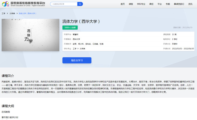“流体力学”入选国家高等教育智慧教育平台