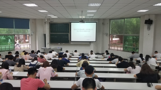 为了考察第40期入党积极分子为期两周的党校学习情况,同时帮助学员们更好地应对即将来临的党校结业考试,2018年5月14日下午18点,能源与动力工程学院在4A-106教室顺利进行了党校结业模拟考试。这已经是党校学员们第四次模拟考试了,本次考试旨在对入党积极分子的理论知识水平进行全面考核。