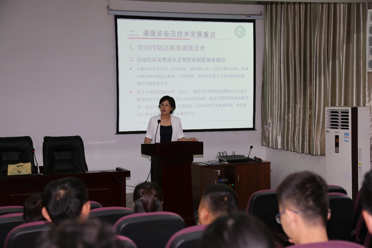 报告会上,李红研究员首先介绍了江苏大学的发展历史、人才培养以及科学研究方面的情况。随后就“喷微灌技术及装备发展重点”,“喷灌装备现状、问题与趋势”,“滴灌装备现状、问题及趋势及灌溉技术现状”、“问题与趋势”等四个方面作了精彩的报告,分析了目前我国喷微灌设备存在的问题及今后的发展方向。李红研究员还与参会师生进行了学术交流,对研究生如何做好学术研究提出了宝贵建议。