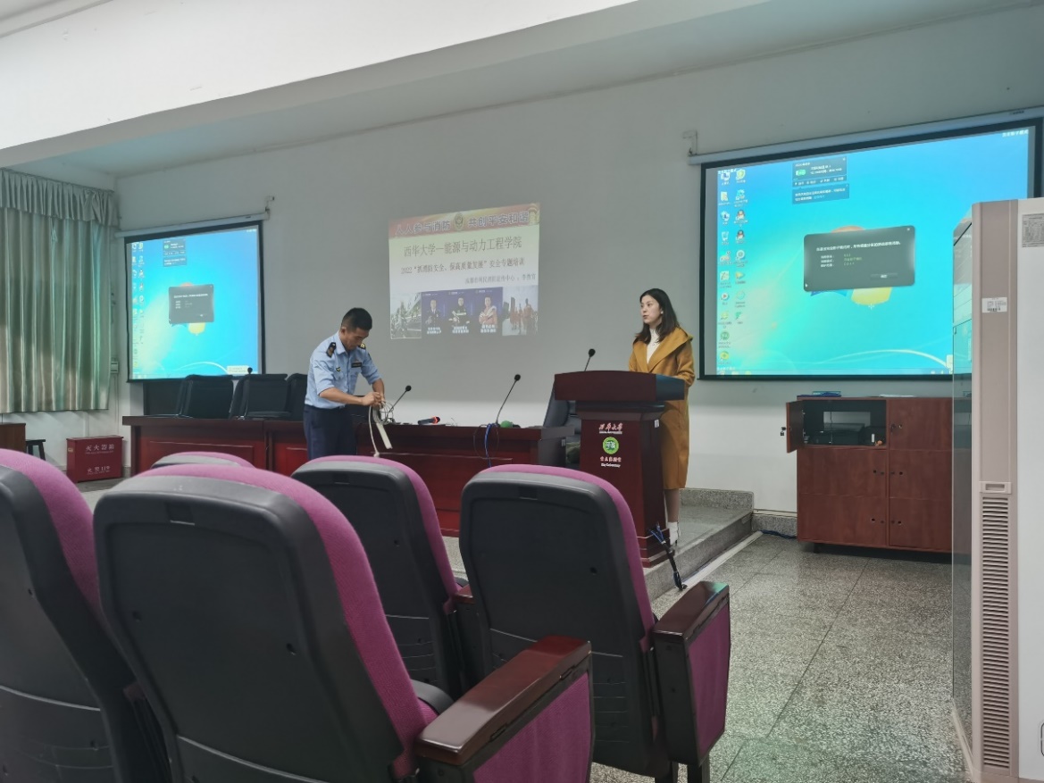 为了积极响应学校“消防安全月活动”倡议,进一步普及消防安全知识、加强师生消防安全意识和提高师生安全自救能力和自我保护能力,11月3日,能源与动力工程学院邀请了具有丰富消防宣传经验的李凯教官在1B201会议室开展了消防安全培训,学院实验室教师、2022级研究生参加了培训消防安全培训。培训会由能源与动力工程学院副院长刘晓辉主持。