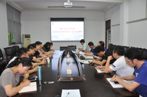 7月2日下午,能源与动力工程学院在1A321召开专题学习会,学习传达了中共四川省委十一届三次全体会议精神.学院党委中心组成员、教工党支部书记、系室主任参加了学习。