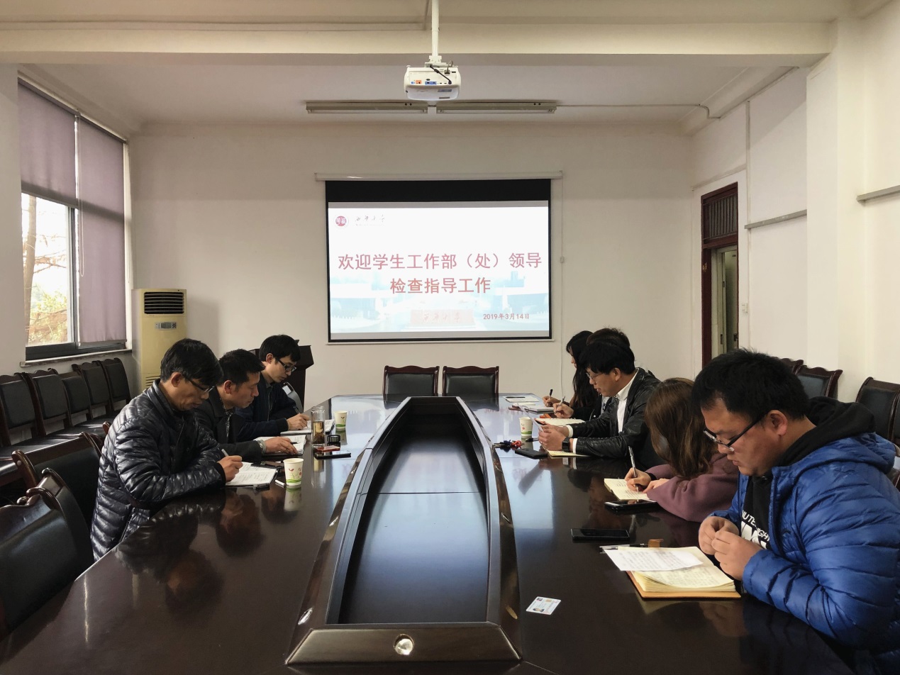 3月14日下午,学生工作部副部长王强、学生资助管理科科长李霖等一行3人来到能源与动力工程学院,就学院近期学生工作开展情况进行检查指导,学院全体辅导员参加了调研,会议由能源与动力工程学院党委副书记兼副院长罗世韡主持。