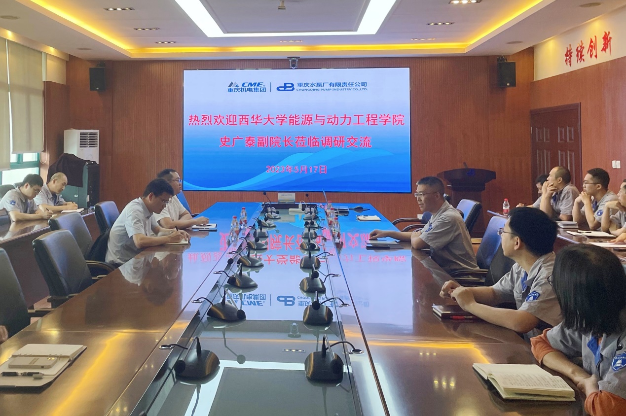 5月17日下午,能源与动力工程学院副院长史广泰、能源与动力工程系教师文海罡到重庆水泵厂有限责任公司就共建研究生实践基地进行调研座谈,重庆水泵厂有限责任公司总工程师马文生、副总工程师白小榜及相关技术人员参加了交流座谈。