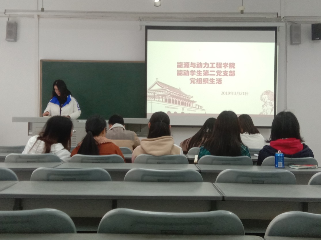 能源与动力工程学院能动学生第二党支部第一次党组织生活于2019年3月21日下午4点在5B214展开。本次党组织生活支部所有同志都按时参加。本次党组织生活的主题是“学习《中国共产党支部工作条例(试行)》,努力做好党支部工作”。