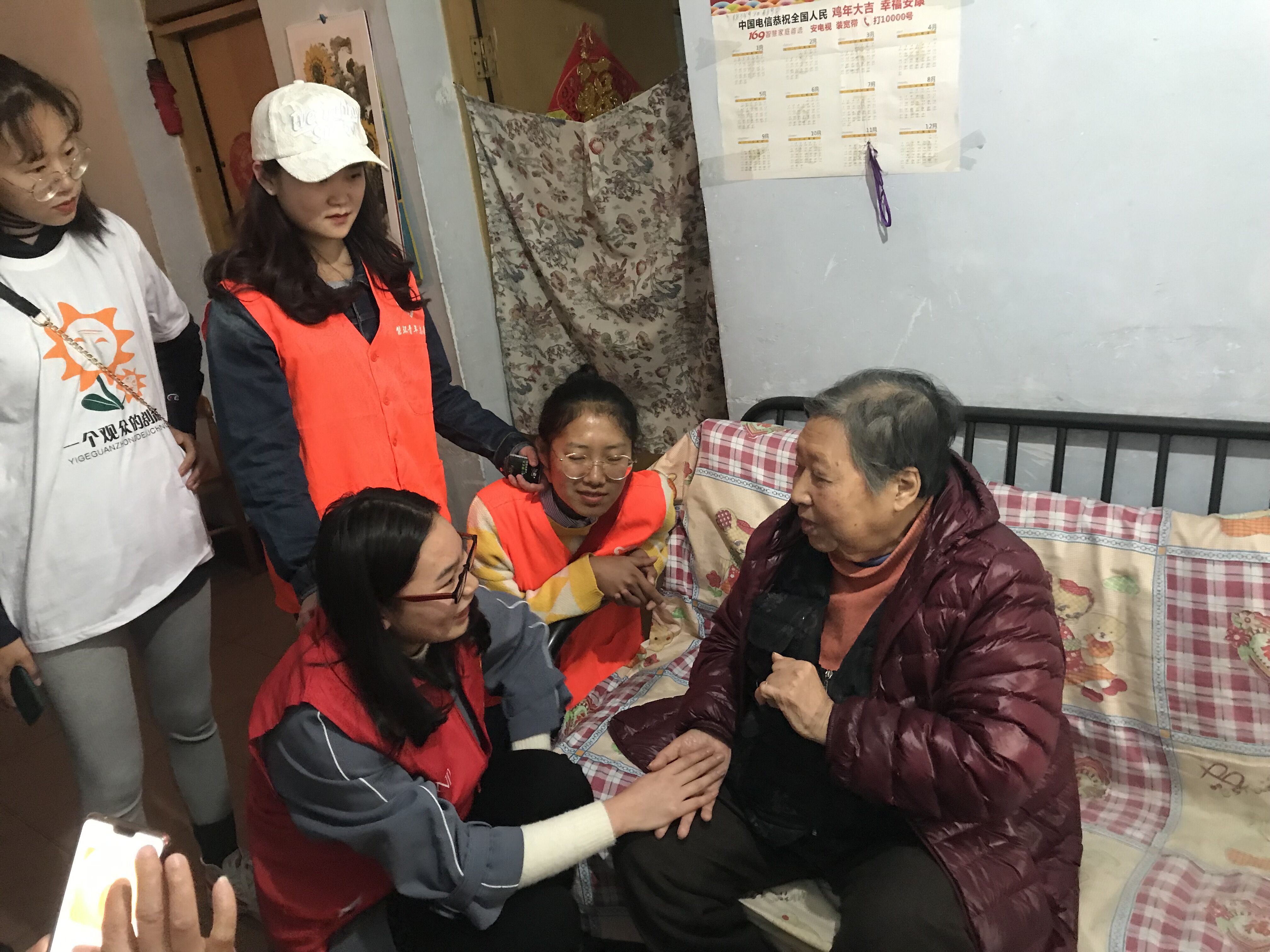 本次志愿服务活动的主题是“关爱孤寡老人”。3月23日9点半左右志愿者们在带队老师的带领下抵达了水井坊锦官驿社区,在社区负责人的带领下,带上事先准备好的物资,前去探望老人们。
