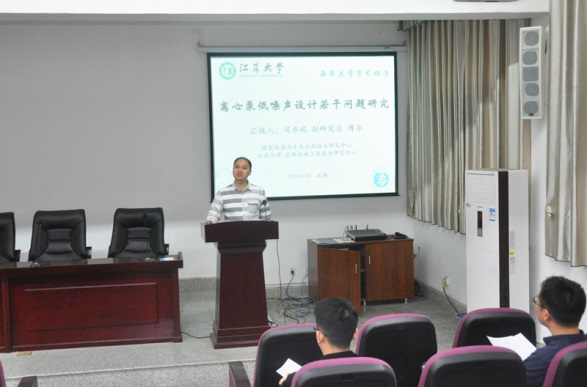 报告会上,司乔瑞博士首先对离心泵噪音的产生进行了详细介绍,并对离心泵低噪声设计的国内国外现状进行了汇报。随后就“离心泵流动诱导噪声的实验研究”、“离心泵流动诱导噪声数值模拟”、“离心泵叶轮声优化水力设计”、“多级离心泵泵水力降噪研究”、“离心泵低噪声水力设计若干准则和方法”等五个方面作了精彩的报告,分析了目前我国离心泵在低噪声设计存在的问题及今后的发展方向。司乔瑞博士还同与会师生进行了学术交流,认真回答了师生们提出的问题。